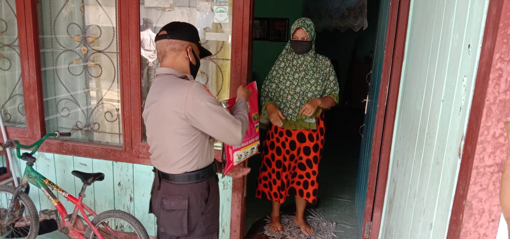 Personil Polres Kukar menyalurkan bantuan paket sembako kepada warga yang membutuhkan khususnya yang terdampak covid 19, Sabtu (18/07/2020).