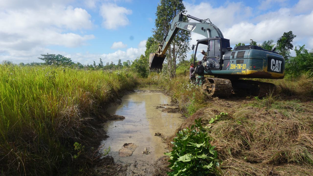 Dengan menggunakan alat berat Excavator milik Detasemen Zeni Tempur (Denzipur) 11 Kodam XVII/Cenderawasih,