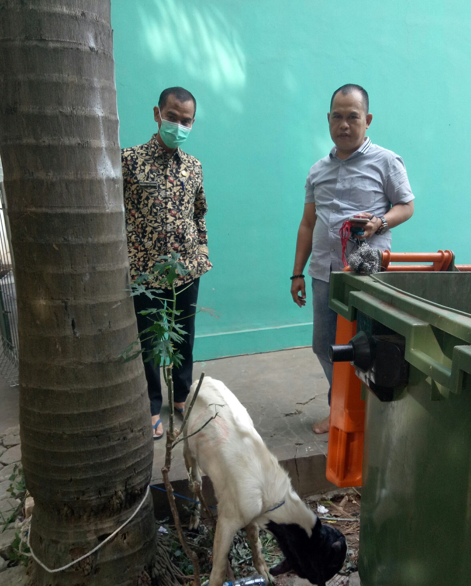 SIDIKPOST| Jakarta Barat-Sekor Kambing diserahkan Camat Kalideres H.Naman untuk warga melalui Hambali selaku pimpinan media Ifakta di halaman kecamatan kalideres , Kamis ( 30/07/2020).
