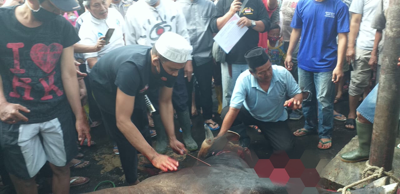 Usai menunaikan Sholat Ied, dilanjutkan dengan prmotongan hewan Qur’ban Sebanyak 22 ekor Sapi, 31 ekor Kambing.