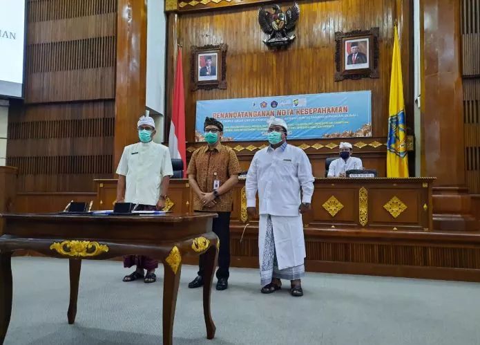 I Ketut Diarmita melakukan penandatanganan Nota Kesepahaman Kemitraan Triple Helix di Kantor Gubernur Bali, Senin (3/8/2020) kemarin