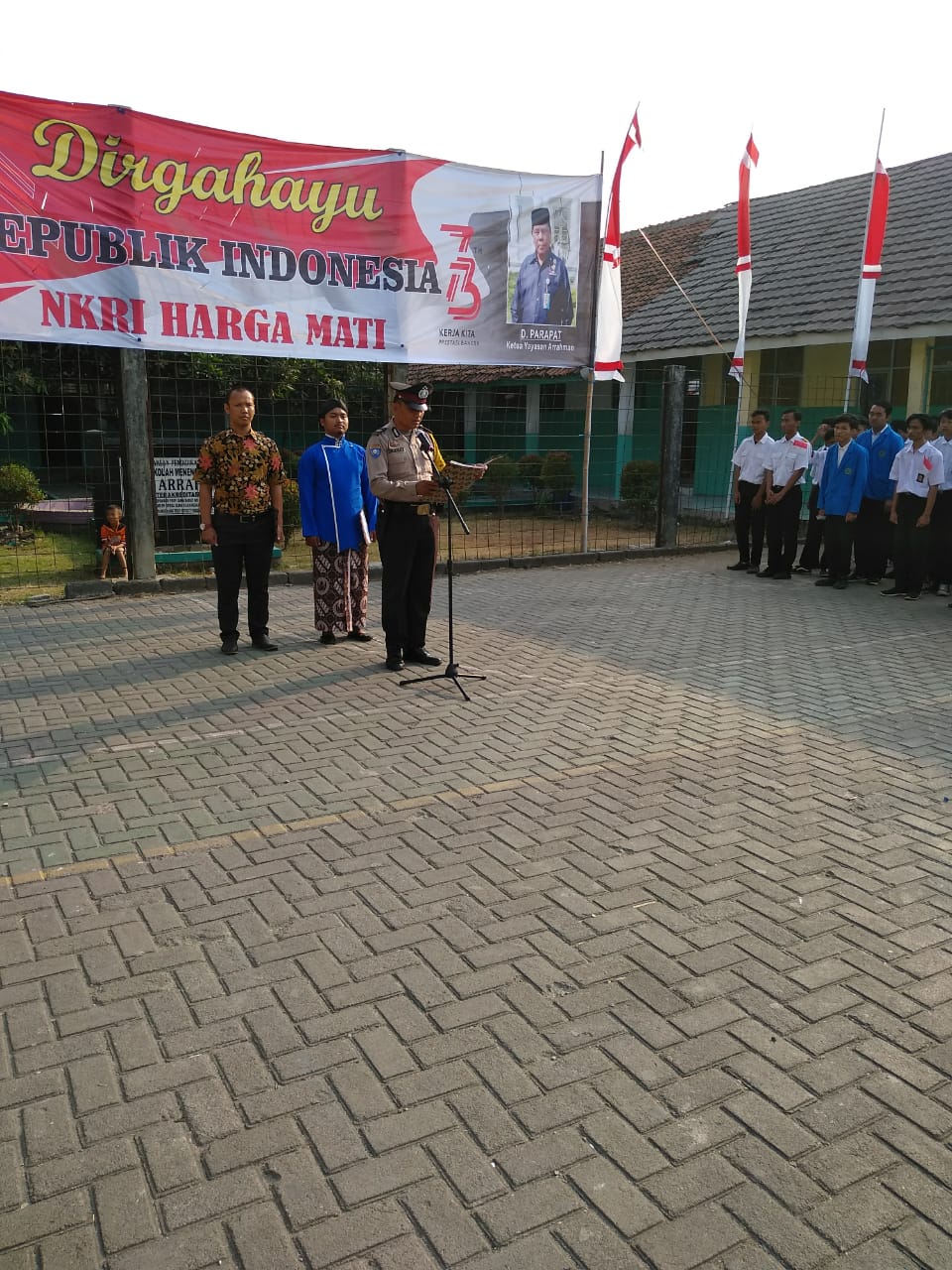 Aiptu SUMIANTO STB Bhabinkamtibmas Kelurahan karangsari laksanakan Upacara HUT RI Ke 73 di SMK ARRAHMAN Komplek Sitanala
