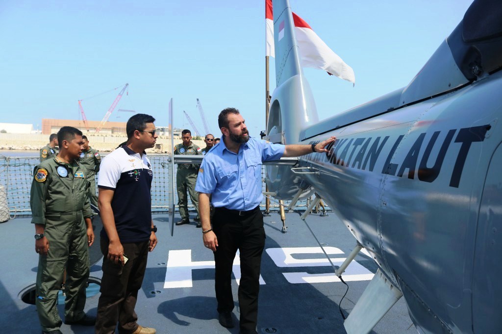 Beirut, Lebanon 26 Agustus 2018,– Miliitary Aviation Safety Officer United Nations Interim in Lebanon (MASO UNIFIL) atau Perwira Keselamatan Penerbangan Militer dan RASO (Regional Aviation Safety Officer) melaksanakan inspeksi terhadap kru dan heli AS 365 N3+DauphinHR-3601 di Geladak Heli KRI Usman Harun-359 sesaat kapal sandar didermaga Beirut beberapa waktu yang lalu.