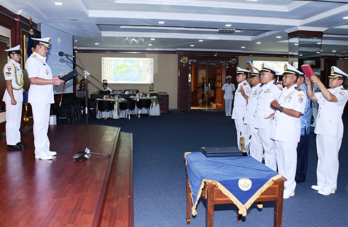 Jakarta, 31 Agustus 2018,– Panglima Komando Armada I Laksamana Muda TNI Yudo Margono, S.E., M.M., pimpin Upacara Pengucapan Sumpah Perwira Penyidik Tindak Pidana Tertentu Di Laut TA 2018 di Aula Yos Sudarso Mako Koarmada I, Jumat (31/8).