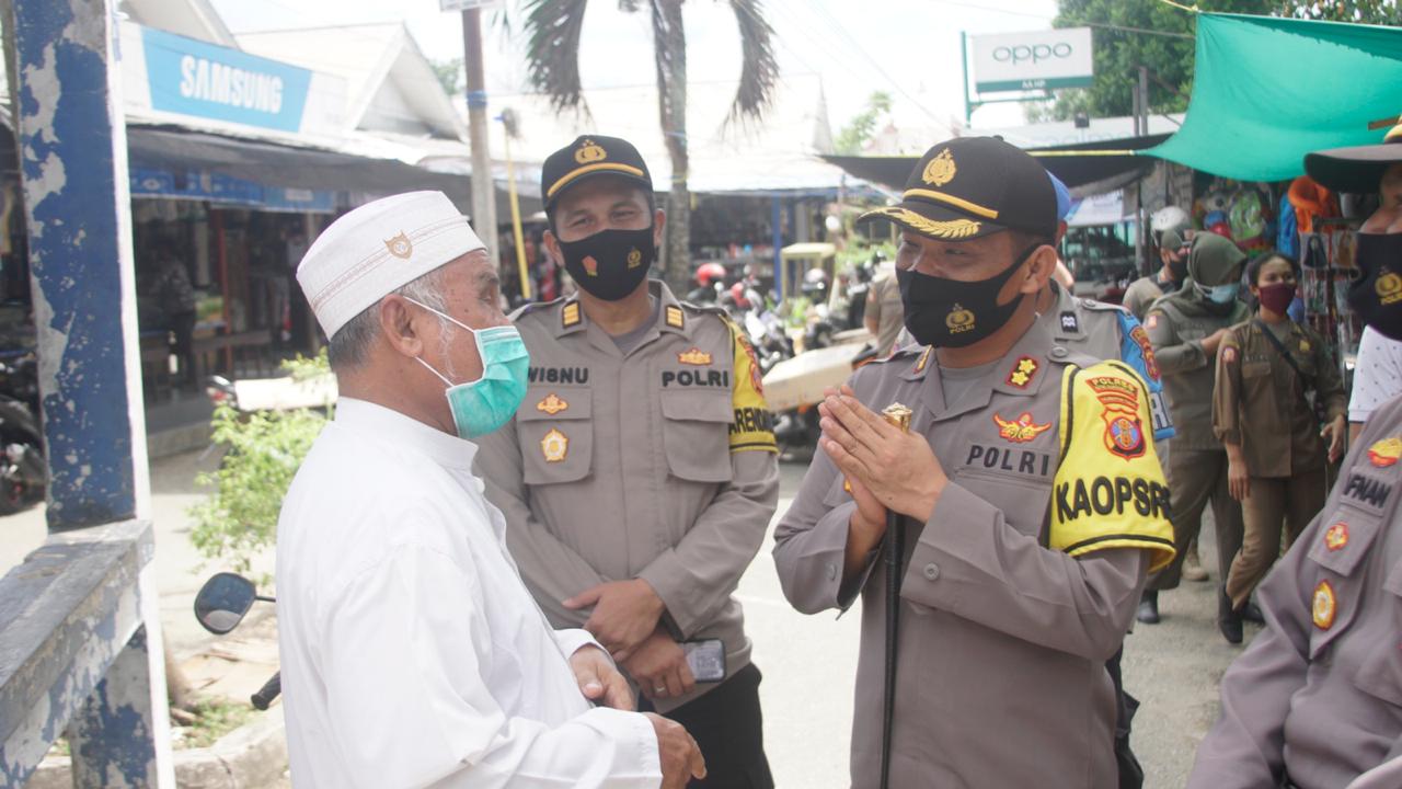 SIDIKPOST| KUKAR – Kapolres Kukar AKBP Irwan Masulin Ginting turun langsung ke pasar tangga arung untuk memberikan himbauan tentang pentingnya penggunaan masker