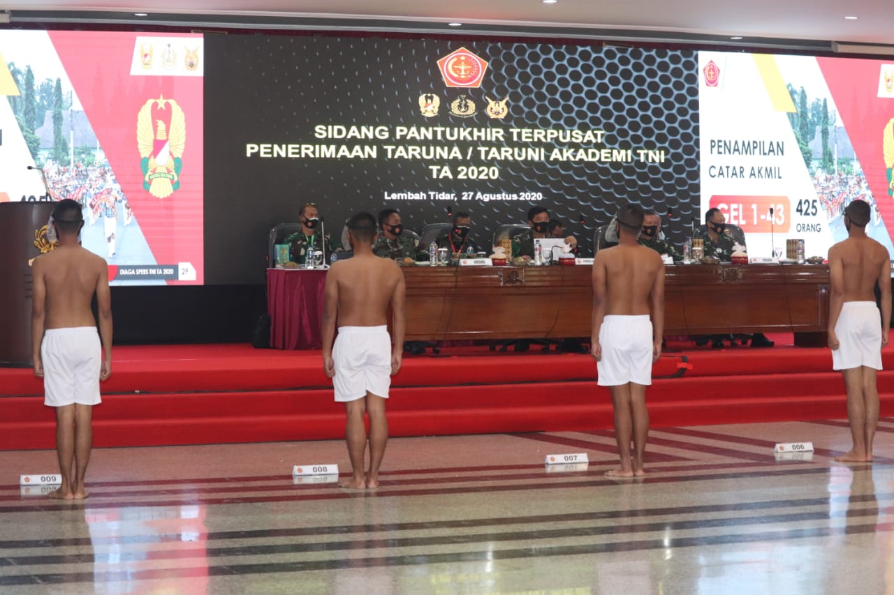 Proses seleksi penerimaan Taruna dan Taruni Akademi TNI TA 2020 mulai dari tingkat daerah sampai dengan tingkat pusat dilaksanakan berdasarkan ketentuan-ketentuan yang ada. Proses seleksi yang dilaksanakan di tengah Pandemi Covid-19 dengan menerapkan Disiplin Protokol Kesehatan yang ketat sesuai aturan yang disampaikan Pemerintah.