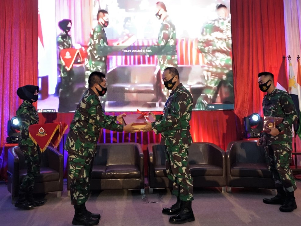 Dengan tersusunnya Naskah Induk dilanjutkan paparan, Dansesko TNI Marsdya TNI Dedy Permadi, S.E., MMDS., melalui virtual teleconference secara resmi menutup Program Kegiatan Kejuangan (PKB Juang) Tahun 2020 diikuti Perwira Siswa (Pasis) Sesko TNI, Peserta Didik (Serdik) Sespimti Lemdiklat Polri, Pasis Sesko Angkatan, Sesdik Sespimmen Lemdiklat Polri dan Mahasiswa Pasca Sarjana dari beberapa perguruan tinggi di Grha Widya Adibrata, Sesko TNI. Jumat (11/09/2020).