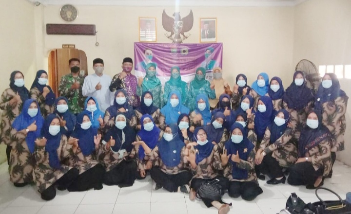 Hj Tuti Supriyadinata Ketua TP PKK Kecamatan Teluknaga Didampingi Oleh Hj Ani Handayani Sekretaris TP PKK Kecamatan Teluknaga, Ranti Siktina Despiranti Bidan Desa Pangkalan.