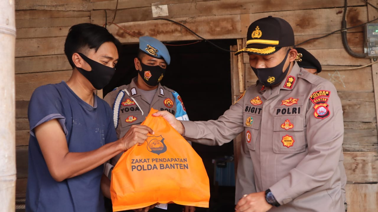 Pada kesempatan tersebut Kapolres Cilegon memberikan bantuan berupa masker dan paket sembako yang diserahkan langsung kepada warga yang dikunjungi