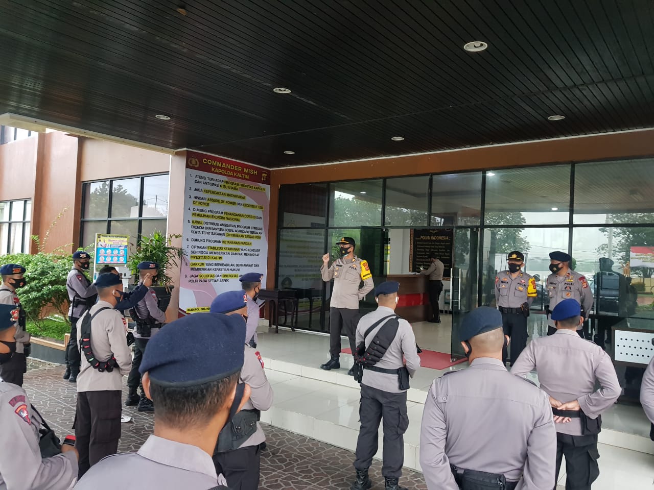 SIDIKPOST| KUKAR – Personil Polres Kukar dan BKO Brimob melaksanakan apel persiapan pengamanan Penetapan Pasangan Calon Bupati dan Calon Wakil Bupati di Mako Polres Kukar, Rabu (23/9/2020)
