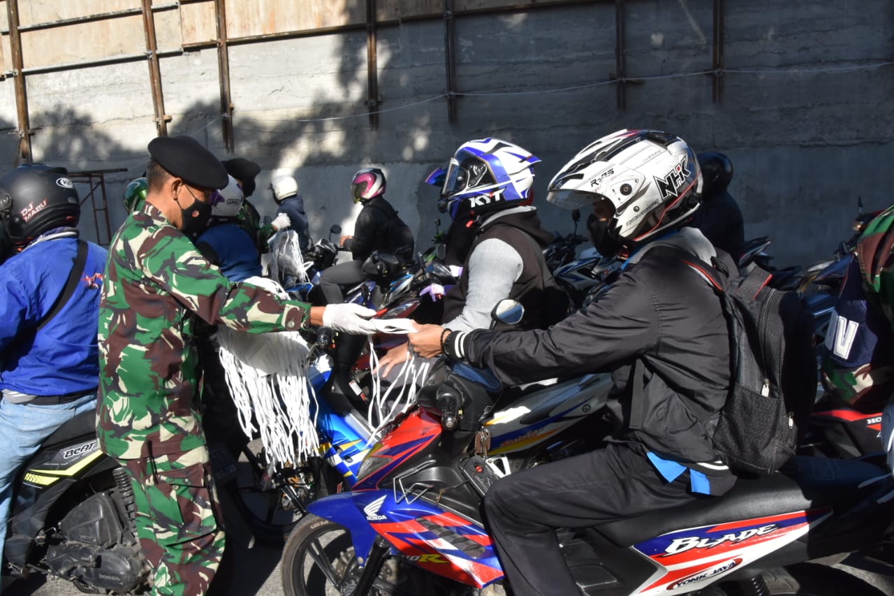 SIDIKPOST| (Puspen TNI). Pusat Kesenjataan Kavaleri (Pusenkav) Komando Pendidikan dan Latihan TNI AD (Kodiklatad) bersama anggota Polsek Batununggal dan Relawan Yayasan Buddha Tzu Chi membagikan 5.000 masker gratis kepada masyarakat Bandung Jawa Barat, dalam rangka menyambut Hari Ulang Tahun (HUT) ke-75 TNI Tahun 2020, bertempat di perempatan Gatsu Laswi, Bandung, Selasa (29/9/2020).