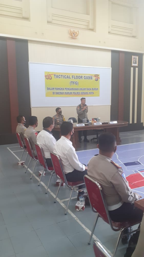 SIDIKPOST| KOTA SERANG – Polres Serang Kota Polda Banten melaksanakan kegiatan Tactical Floor Game (TFG) atau biasa disebut gladi lapangan sistem Pengamanan di Aula Mapolres Serang Kota, Senin (12/10/2020).