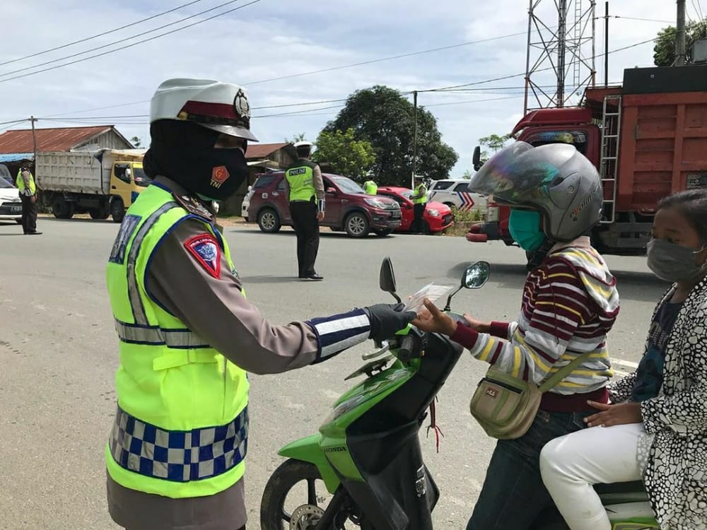 Kapolres Kukar AKBP Irwan Masulin Ginting melalui Kasat Lantas AKP Creato S. Gulo mengatakan pembagian masker gratis ini untuk meningkatkan kewaspadaan masyarakat terkait potensi penularan COVID-19.
