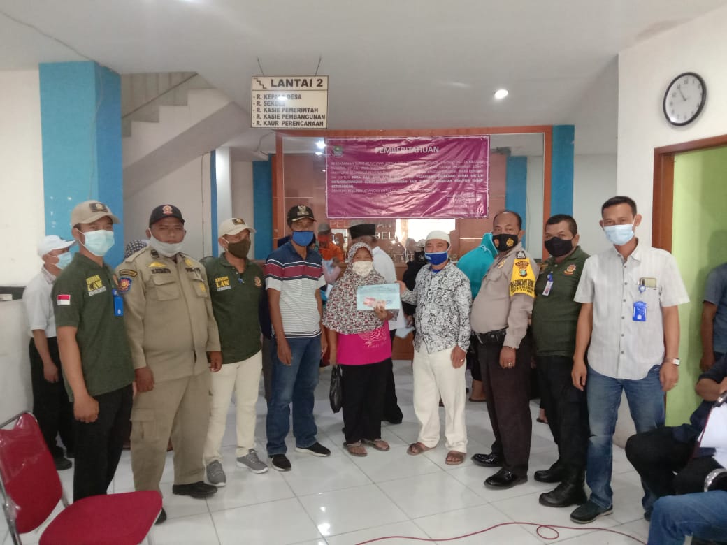 Aparatur Desa Belimbing Dan Karang Taruna ,LPM ,BPD ,Ketua RT/RW Beserta Petugas Kantor Pos Tangerang Diantaranya Sodikin ,Komar Dan Hairul Beserta 820 KK Penerima Bantuan Sosial Tunai (BST) Tahap 8 Tahun 2020.