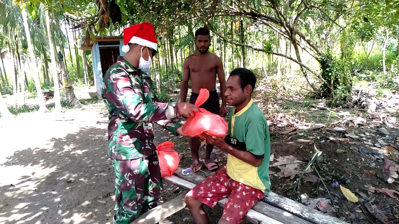 SIDIKPOST| (Jayapura-Papua). Satgas Pamtas RI-PNG Yonif Mekanis Raider 413 Kostrad Pos Yetti melakukan aksi membagikan bahan pokok makanan di bulan yang penuh Kasih kepada masyarakat Kampung Yetti Distrik Arso Timur Kabupaten Keerom. Demikian disampaikan Dansatgas Pamtas RI-PNG Yonif MR 413 Kostrad Mayor Inf Anggun Wuriyanto S.H., M.Han dalam rilis tertulisnya di Distrik Muara Tami Kota Jayapura, Papua, Senin (21/12/2020).