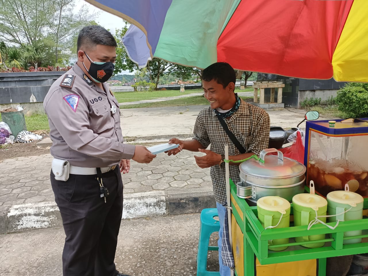 Selain memberikan himbauan dan sosialisasi, juga dilaksanakan pembagian masker sebagai bentuk kepedulian Polri terhadap upaya pencegahan Covid- 19.