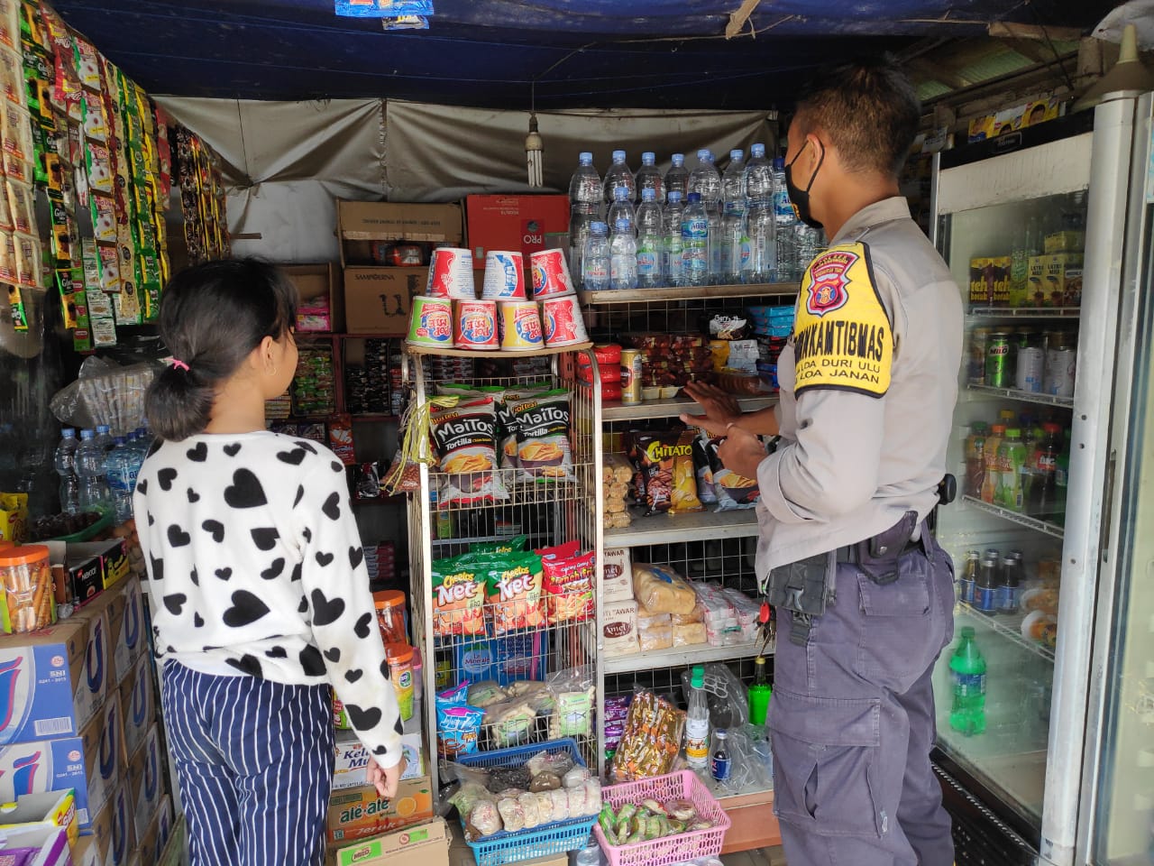 SIDIKPOST|Kukar – Polsek Loa Janan Polres Polres Kukar menggelar patroli sekaligus pemantauan harga sembako di Wilayah Hukum Polsek Loa Janan. Kegiatan ini untuk memantau harga sembako di tengah pandemi Covid-19 bersamaan tahun baru 2021. Jum’at (01/01/2021).