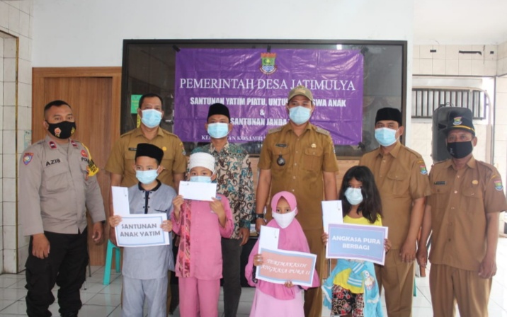 Melaksanakan Kegiatan Acara Santunan Anak Yatim ,Sebanyak 100 Anak Yatim Dan Santunan Tersebut Diberikan Langsung Secara Simbolis Oleh Poniman SH.,Kepala Desa Jatimulya. Pelaksanaan Acara Santunan Anak Yatim ,Bertempat Di Aula Kantor Desa Jatimulya Kecamatan Kosambi Kabupaten Tangerang.(05/01/21)