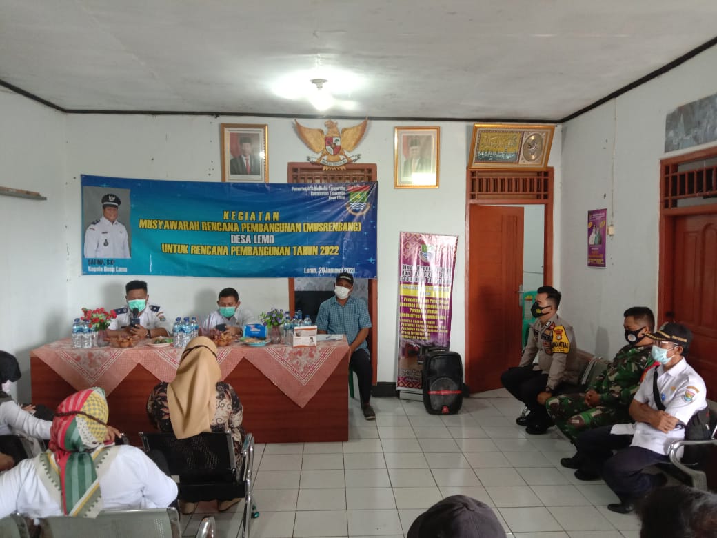 Pelaksanaan Kegiatan Acara Musyawarah Rencana Pembangunan (Musrenbang) Desa Lemo Untuk Rencana Pembangunan Tahun 2022. Dilaksanakan Dengan Tetap Mengedepankan Disiplin Protokol Kesehatan Dan Melaksanakan 4 M (Cuci Tangan Memakai Sabun ,Wajib Menggunakan Masker ,Menjaga Jarak Aman Dan Dilarang Berkerumun).