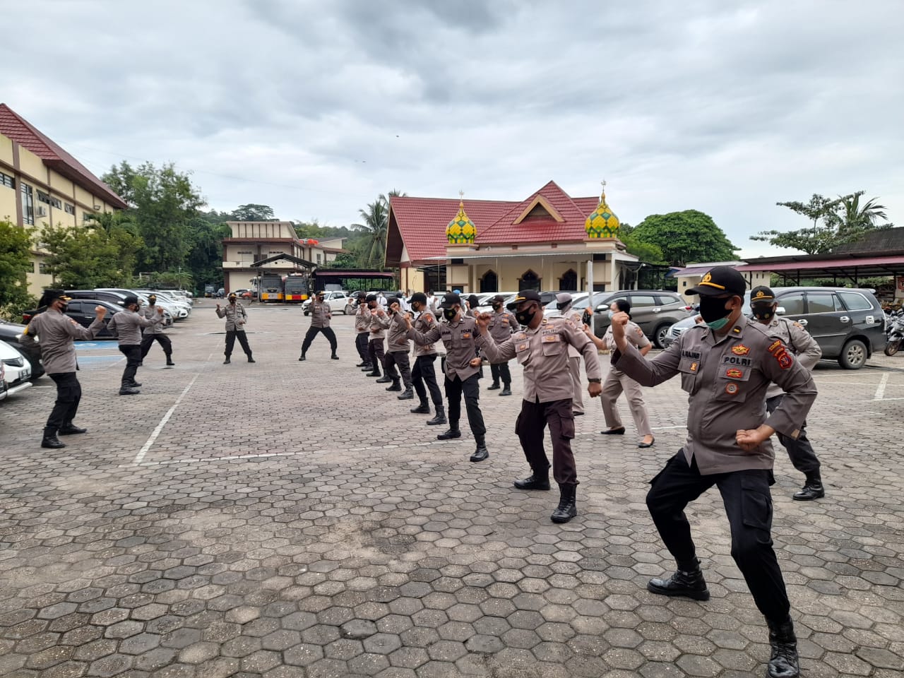 Kukar – Senin (25/01/2021), setelah pelaksanaan apel pagi personel Polres Kukar kembali melaksanakan latihan rutin beladiri Polri guna jaga daya tahan tubuh.