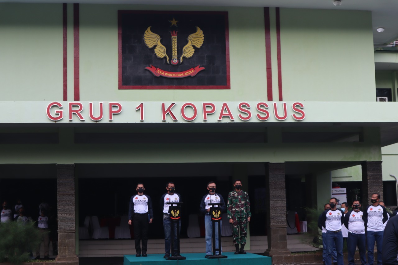 Memperkokoh yang sudah terbina selama ini, Kapolda Banten, Irjen Pol. Dr. Rudy Hariyanto, S.H., M.H., M.B.A menggelar silaturahmi dengan jajaran TNI di daerahnya, Selasa (10/2/21) di Markas Komando (Mako) Grup I Kopasus, Serang.