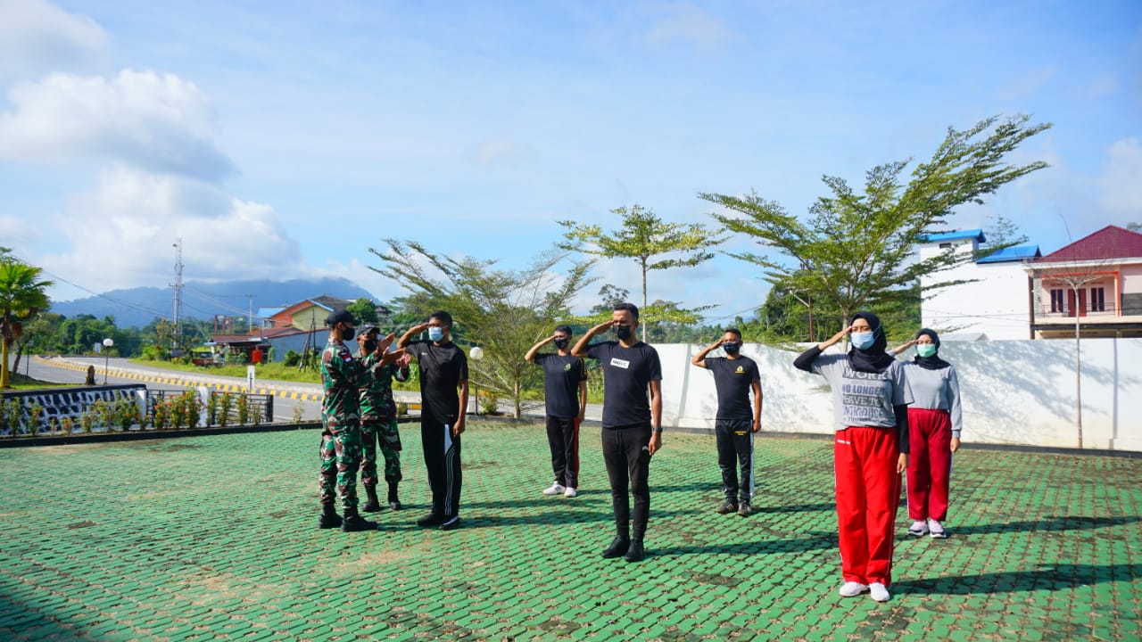 SIDIKPOST|(Sanggau-Kalbar). Satgas Pamtas Yonif 642/Kapuas Pos Komando Taktis (Kotis), membantu Cabang Kejaksaan Negeri (Cabjari) Sanggau di Entikong memberikan bekal pembinaan dan pelatihan Bela Negara kepada enam orang CPNS di lingkungan Kantor Cabang Kejaksaan Negeri Sanggau di Entikong.