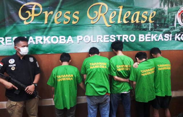 Nonton bola sambil isap Ganja, Kelima suporter Bola ini di amankan Polres Metro bekasi kota