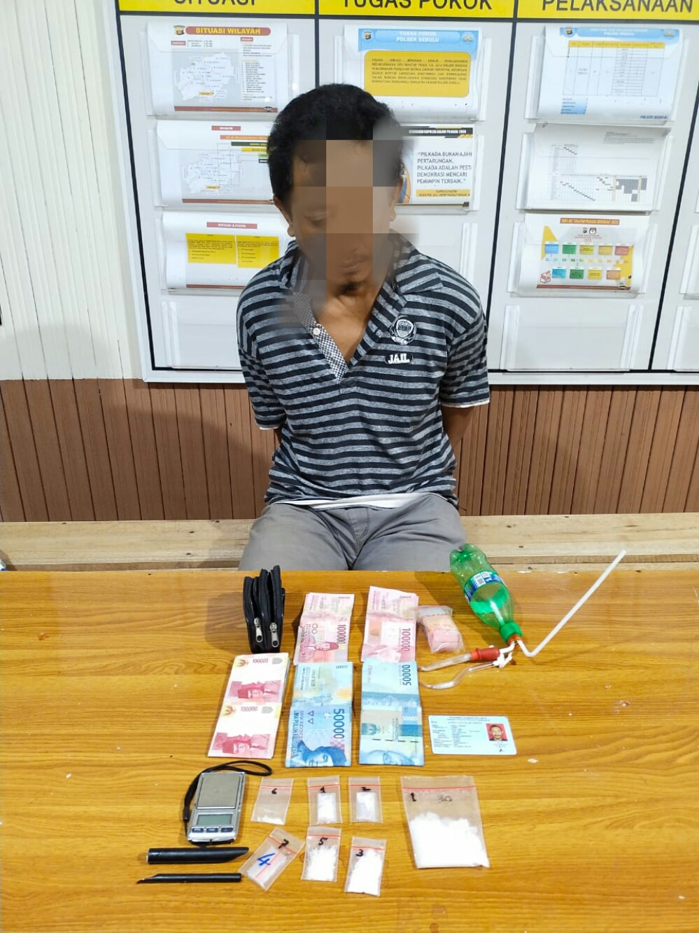 “Dari tangan SA didapati barang bukti berupa 8 poket sabu-sabu dengan berat 22,64 gram, Uang tunai senilai Rp. 5.000.000, dan barang bukti lainnya “, ucap Kapolsek.