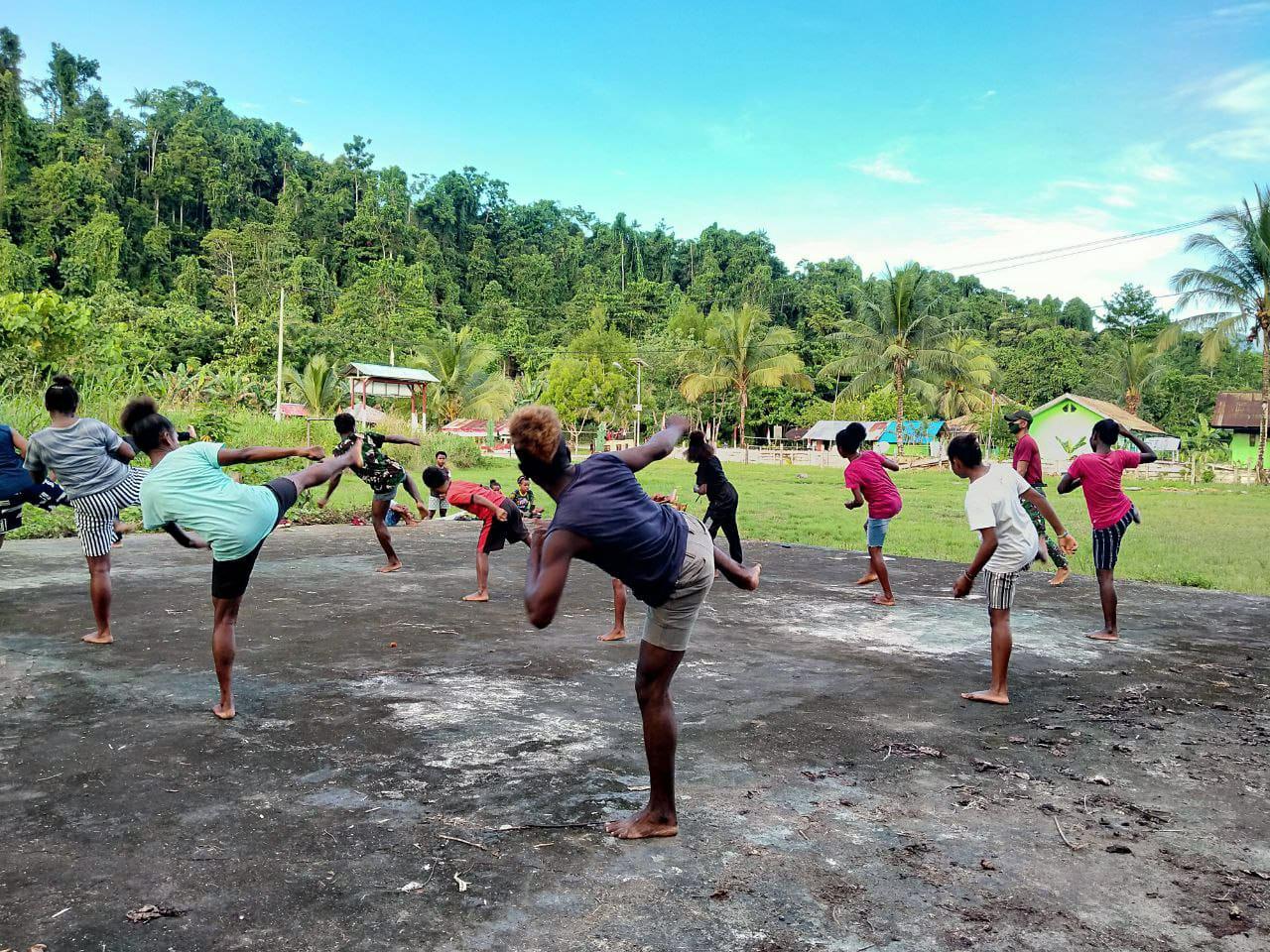 SIDIKPOST | (Jayapura). Prajurit TNI Satgas Pamtas RI-PNG Yonif 131/Brs Pos Mosso melatih bela diri Pencak Silat kepada pemuda Kampung Mosso, Distrik Muara Tami, Kota Jayapura, Papua. Hal ini disampaikan Dansatgas Letkol Inf Muhammad Erfani S.H., M.Tr (Han), dalam keterangan tertulisnya di Jayapura, Rabu (28/04/2021).