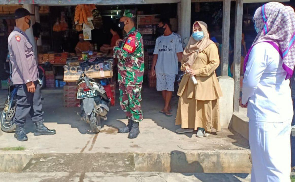 SIDIKPOST | Kab Tangerang–Koramil 06/Slk dan Polsek serta Puskesmas Selakau melakukan imbauan dan pembatasan kerumunan di Komplek Pasar Selakau, Desa Sungai Nyirih, Kecamatan Selakau, Kabupaten Sambas, Minggu (30/5/2021).