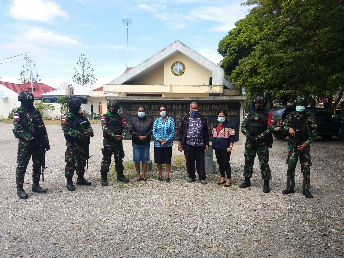 SIDIKPOST | (Papua). Prajurit TNI yang terlibat dalam Satgas Pamrahwan Yonif RK 751/VJS di Papua mengunjungi kantor Klasis Baliem Yalimo, Wamena, bertujuan untuk menjalin silaturahmi dengan Tokoh Agama setempat, Jumat (25/6/2021).