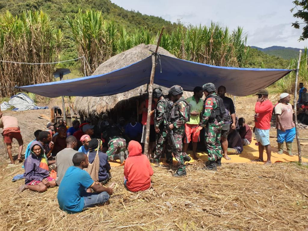 Satgas Pamrahwan Yonif RK 751/VJS memenuhi panggilan dalam undangan adat Bakar Batu yang dipimpin oleh Letda Chb Adi Catur beserta 7 personel lainnya.