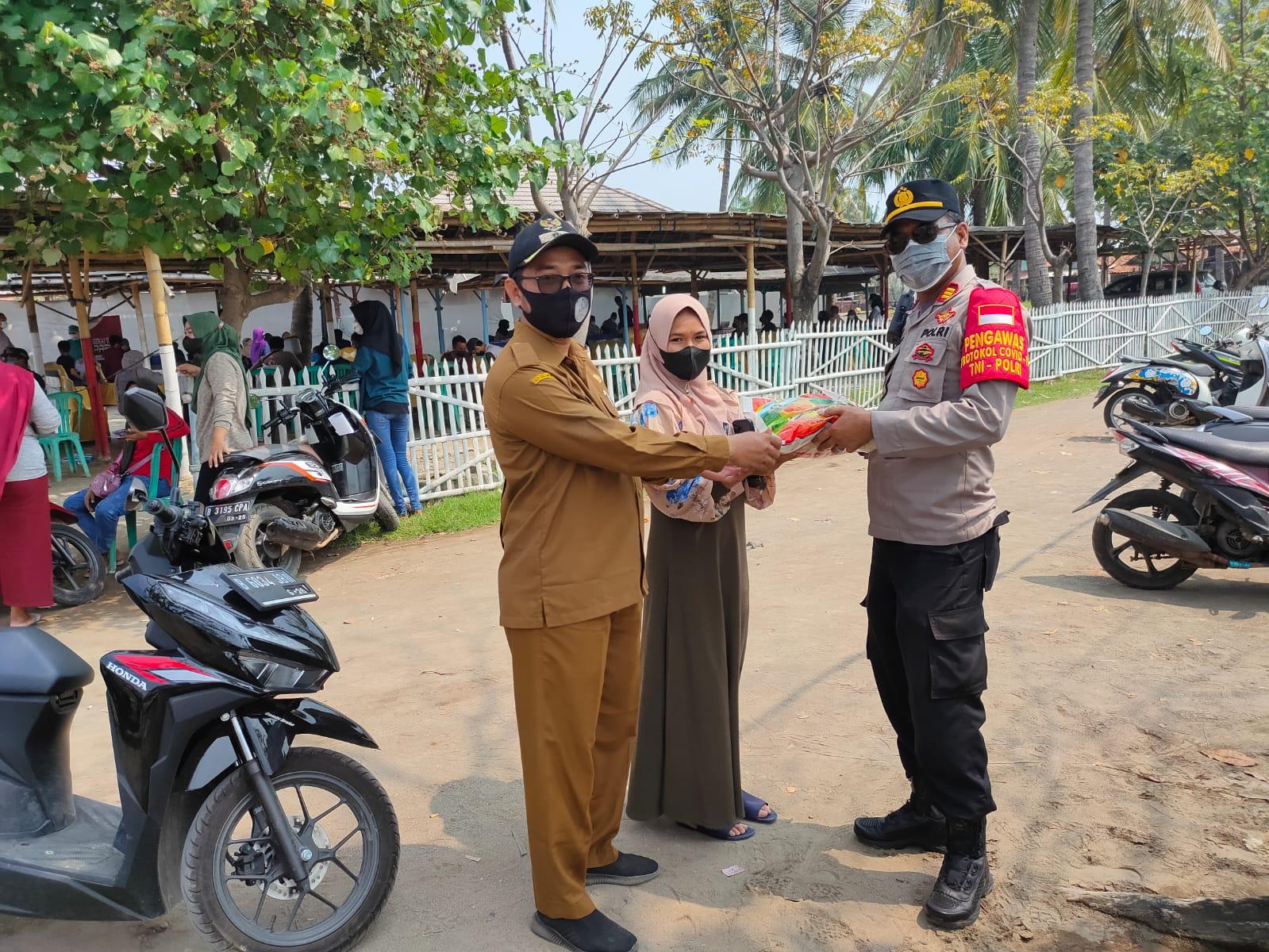 Selanjutnya ,Setelah Dilakukan Vaksinasi Para Peserta Vaksin Diberikan Sembako Berupa 1 Karung Beras @5 Kg Secara Simbolis Oleh AKP Antonius. SH.MH,. Kapolsek Teluknaga.