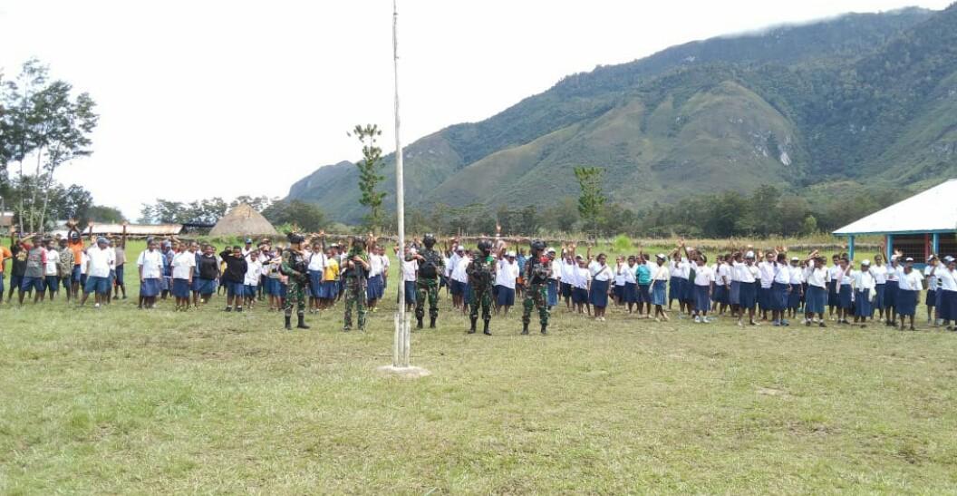 Dalam kunjungannya, anggota Pos Kurulu yang dipimpin langsung oleh Letda Inf Edi Sujianto selaku Danpos mendapatkan sambutan langsung dari Kepala Sekolah SMPN 1 Kurulu Ibu Ruch Rombe.