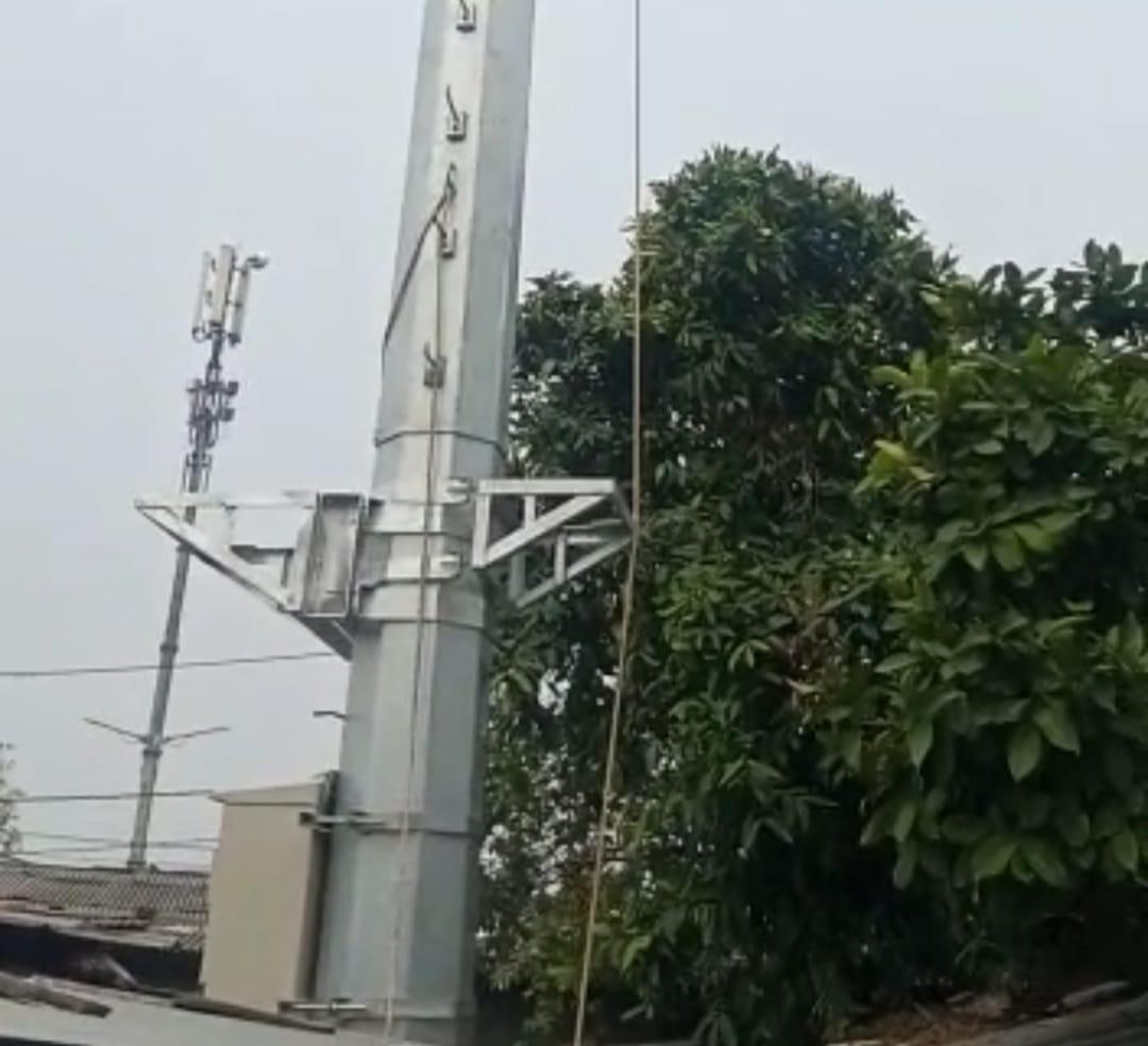 Pasalnya menara setinggi kurang lebih 30 meter tersebut berdiri di tengah area pemukiman padat penduduk yang diduga tidak memiliki Izin Mendirikan Bangunan Menara (IMBM)