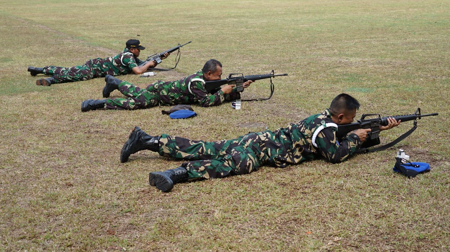 Pada latihan tersebut, para peserta berlatih menembak senjata laras panjang M-16 dengan posisi tiarap, duduk dan berdiri.