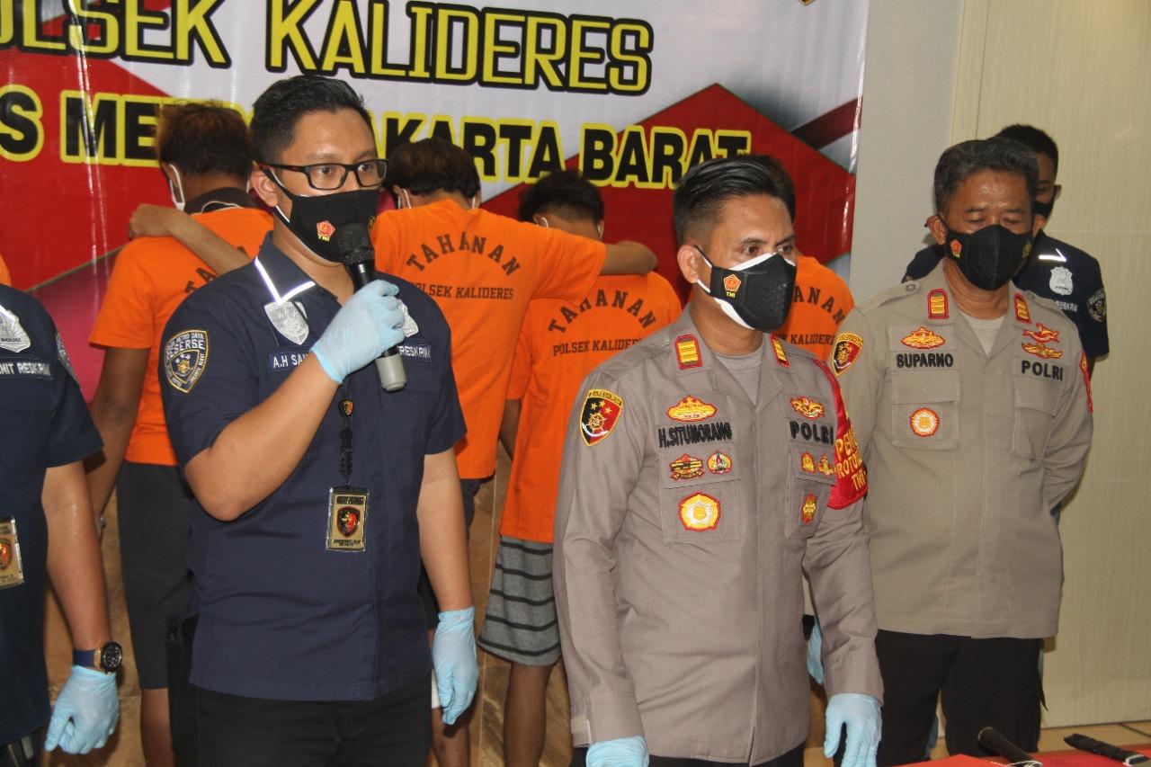 ” Dari 11 orang yang diamankan pihaknya menetapkan 8 orang tersangka yang telah mencukupi unsur pidana ” Ujar Akp Hasoloan saat press conference di halaman polsek Kalideres, Senin, 27/9/2021.